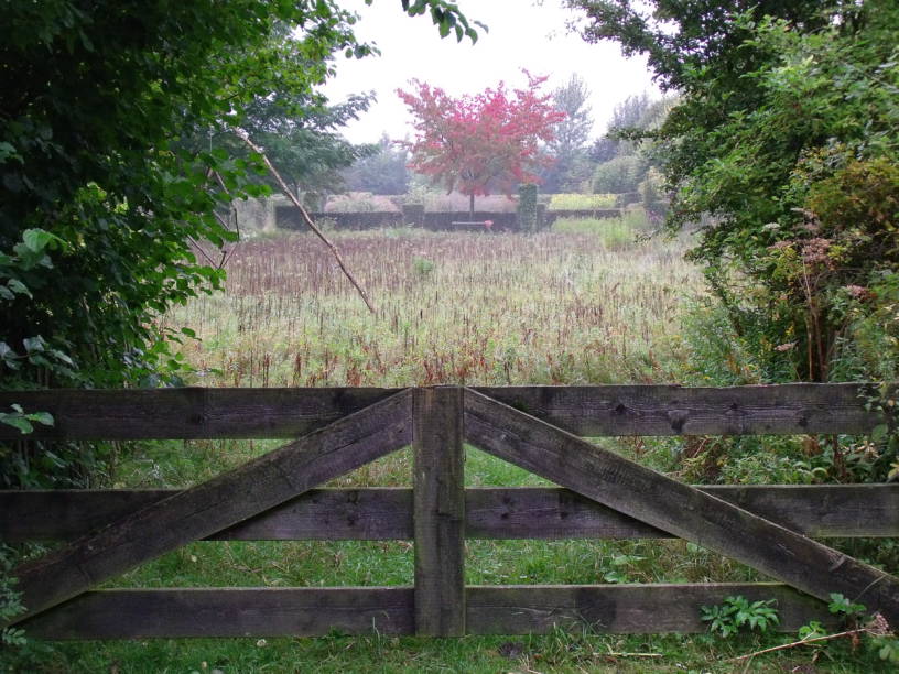 Het hek brengt een scheiding tussen het wilde bloemenweiland en de Oosterweg. Het houdt voor mij de drukke wereld staande. Tot hier en niet verder.  Auto’s razen voorbij maar zijn weg voordat ze aanwezig kunnen zijn.