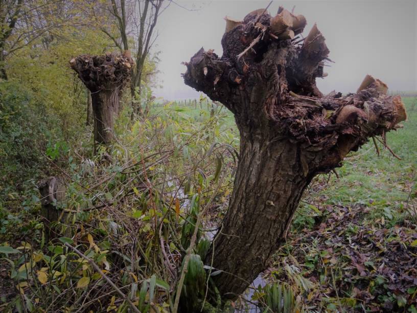 Als oude mannen staan de knotwilgen langs het water. Het voortgaan van de jaren heeft diepe rimpels getrokken. Prachtige meanderen ze als in het gezicht van een mens die het leven geleefd heeft.