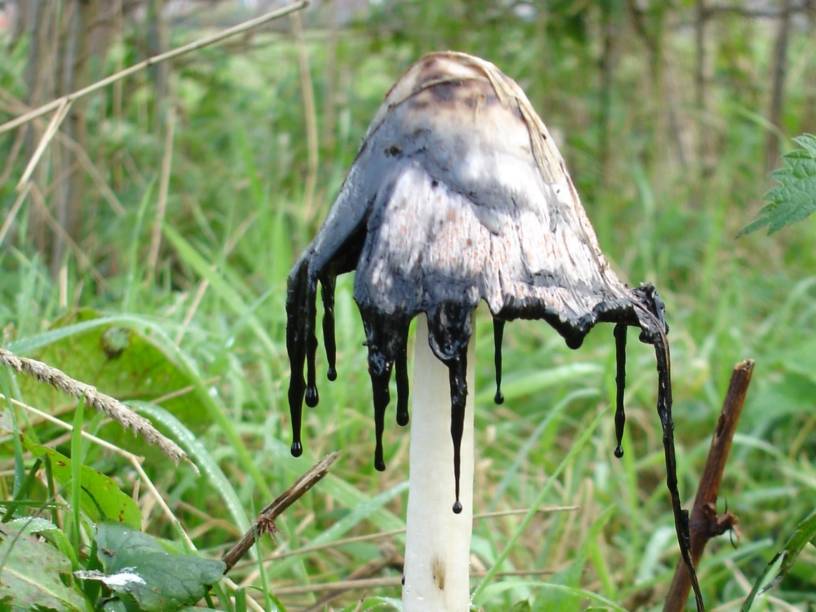 Bij sommige paddenstoelen moet je het treffen. Zo liep ik pas tegen een inktzwam aan. Met inktdruppels als hangende snottebellen aan het neusje van kleine kinderen.