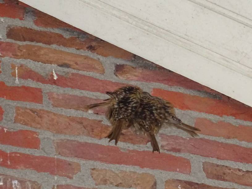 Ik vind op mijn houtstapel veel vogelpoepjes. Ik kijk langs de muur omhoog naar de nok van het dak waar dit vandaan moet komen. Niets te zien… Maar ik heb recent een artikel over een onderzoek gelezen van bij elkaar slapende boomkruipers op dergelijke plekken.