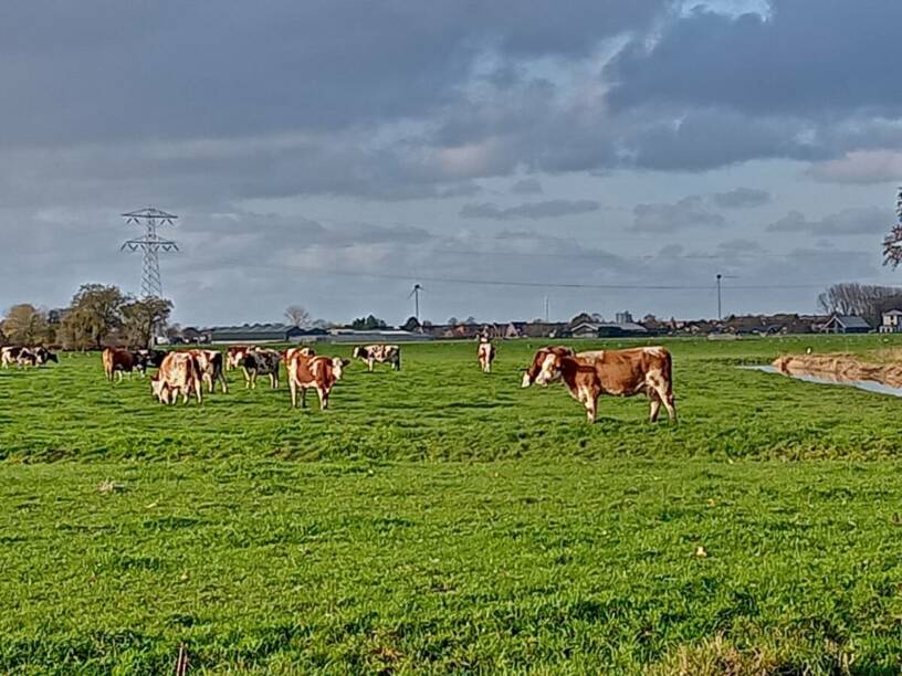 Het gaat dwars door de weilanden en laten daar nu vaak koeien in staan… Koeien op het weiland vergroot het fietsplezier. Nu helemaal omdat het al eind november is. Half november stonden de koeien nog in de wei…