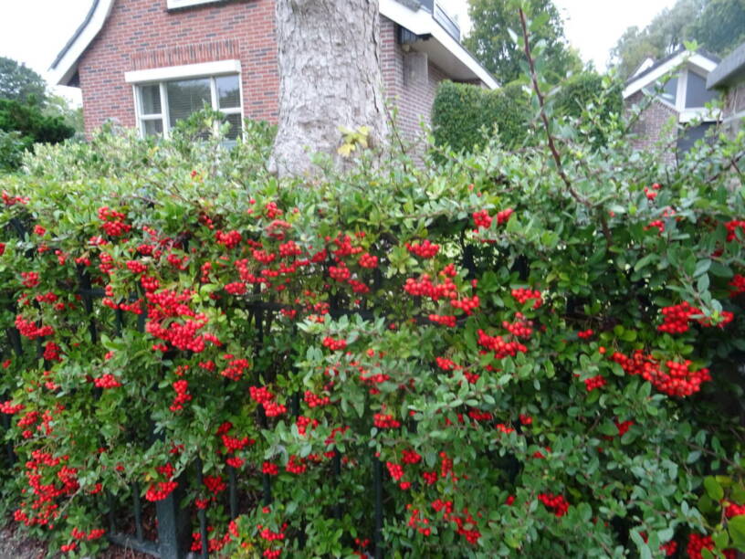 Enorme doorns boren makkelijk in je handen en dwars door je handschoenen heen. Kijk ook uit voor je kruiwagenbanden. Je bent zo de Sjaak. Een lekke band is snel gebeurd. Wat valt er dan voor een plezier aan de vuurdoornhaag te beleven? Voldoende zou ik zeggen. In deze periode hangt hij opvallend vol met oranje bessen.